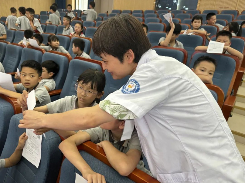 讲座中,肖医生用通俗易懂的语言,向同学们讲解了眼睛的重要性、近视的成因以及科学预防方法。她深入浅出地介绍了眼睛的生长发育过程,强调了视力保护的关键时期,并贴心提醒大家:要养成良好用眼习惯,避免长时间近距离用眼,增加户外活动时间,这些都是预防近视的有效“法宝”。